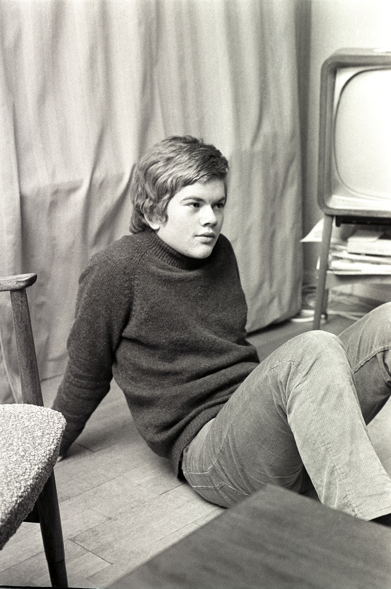 Hjemme Hos Familien Takvam Sonnen Magnus Takvam Foran Tv Skjermen Norsk Folkemuseum Digitaltmuseum